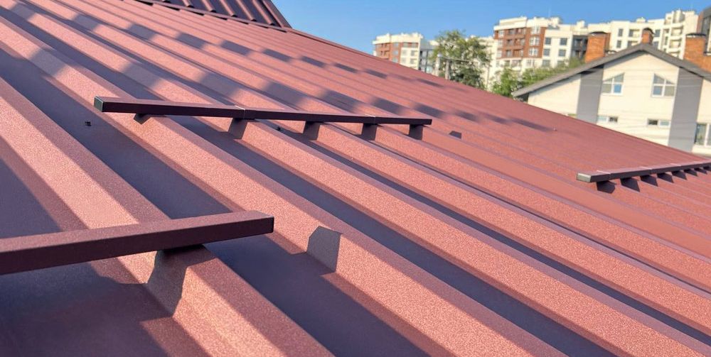 - Полное совпадение с кровлей. Профильные трубы снегозадержателей производятся из того же рулона металла, что и основная крыша, что исключает разницу в оттенках и текстуре.